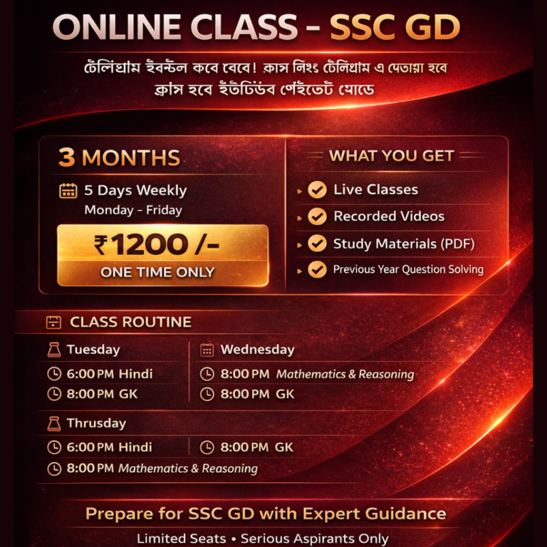 WBP Online basic Class Join Now WBP & KP Constable Basic to Advance Online Class Join Now RRB online basic class Join Now RRB (Railway) Basic to Advance Online Class Join Now Combined February Online 1 year Join Now 100 Mock Test WBSSC Group C & D Join Now RRB Group D 2026 February Month 100 Mock Test Join Now RRB NTPC 2026 100 Mock Test Join Now Daily Current Affairs Join Now Online Class SSC GD Join Now Restart Batch 1 year Course For WBP Students Join Now WBSSC Group C & D Online Class Join Now
